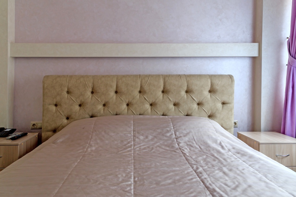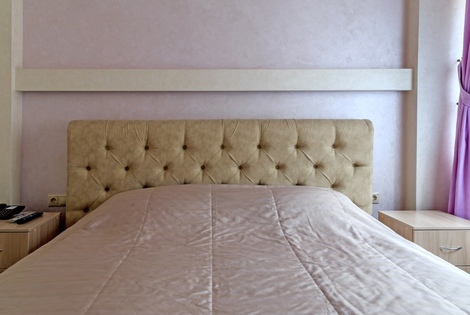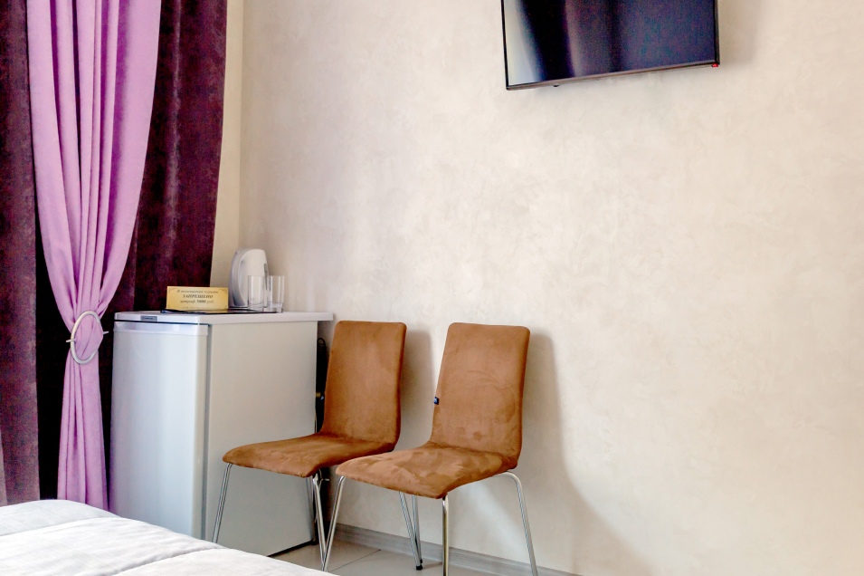 В номере присутствует 1 двуспальная кровать, сплит-система, холодильник, телевизор (smartTV), шкаф для одежды и багажа, чайный столик, электрический чайник, набор бокалов.