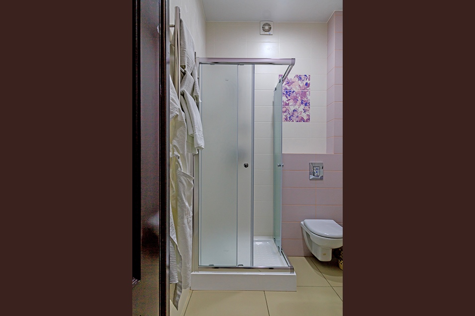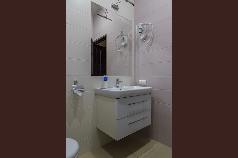 В ванной комнате имеется полноценный душ, туалет, раковина с зеркалом и электрический фен для волос, сушилка для одежды.