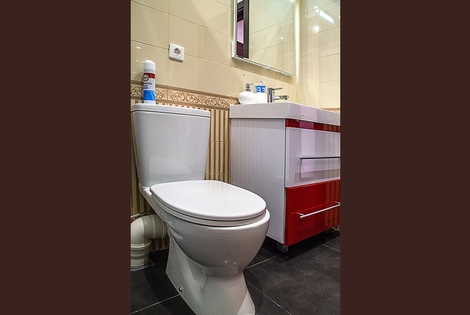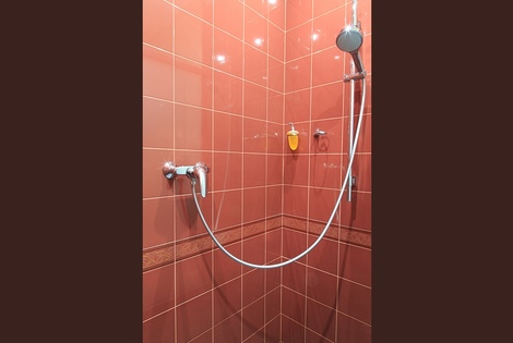 Имеется полноценная ванная комната, в ней присутствует душ, туалет, раковина с зеркалом и электрический фен для волос, сушилка для одежды.