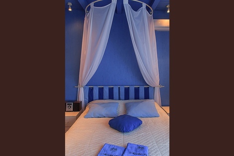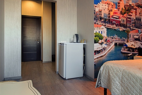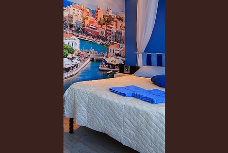 Номер выполнен в средиземноморском стиле, очень спокойная цветовая палитра в оформлении.