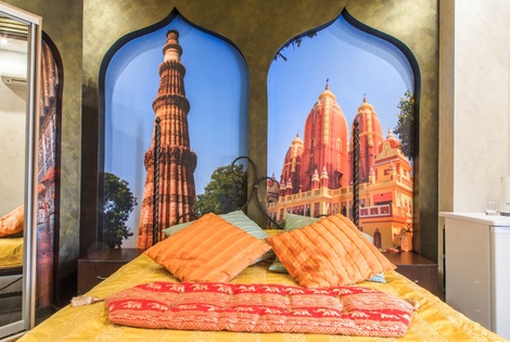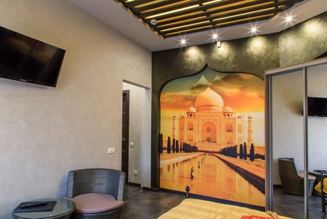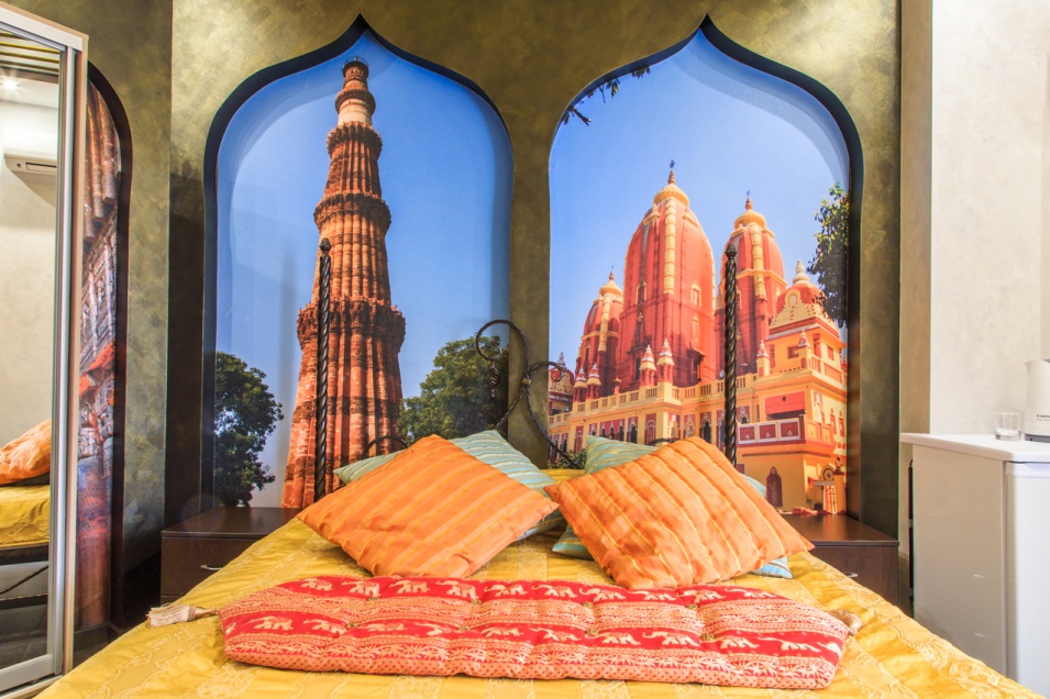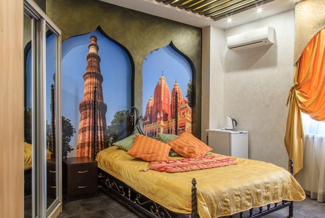 Номер выполнен в индийском стиле и украшен соответствующей антуражу атрибутикой.