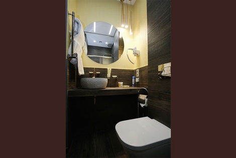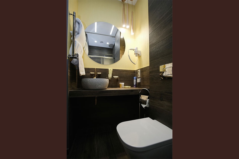 Имеется полноценная ванная комната, в ней присутствует душевая кабина , туалет, раковина с зеркалом и электрический фен для волос, сушилка для одежды.